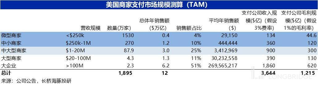 从上文可见,支付手续费收入是公司商家业务营收的主要来源,那么单以美国市场来看,支付行业的潜在市场规模到底有多大?