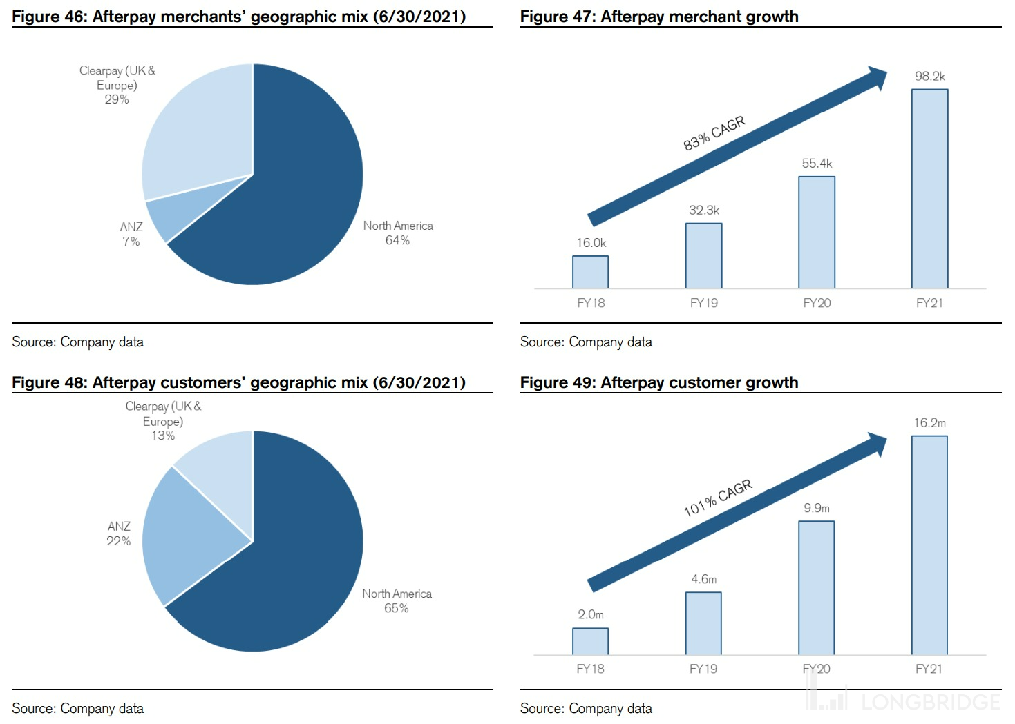 2)引入先买后付,丰富产品类型:除了 C 端用户转换外,通过收购 AfterPay 取得的先买后付业务,也能丰富公司向已有 C 端及 B 端用户提供的服务广度。