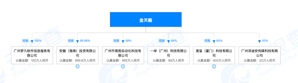 事实上,据天眼查数据显示,一岸科技及安磐投资实控人均为金天毅。