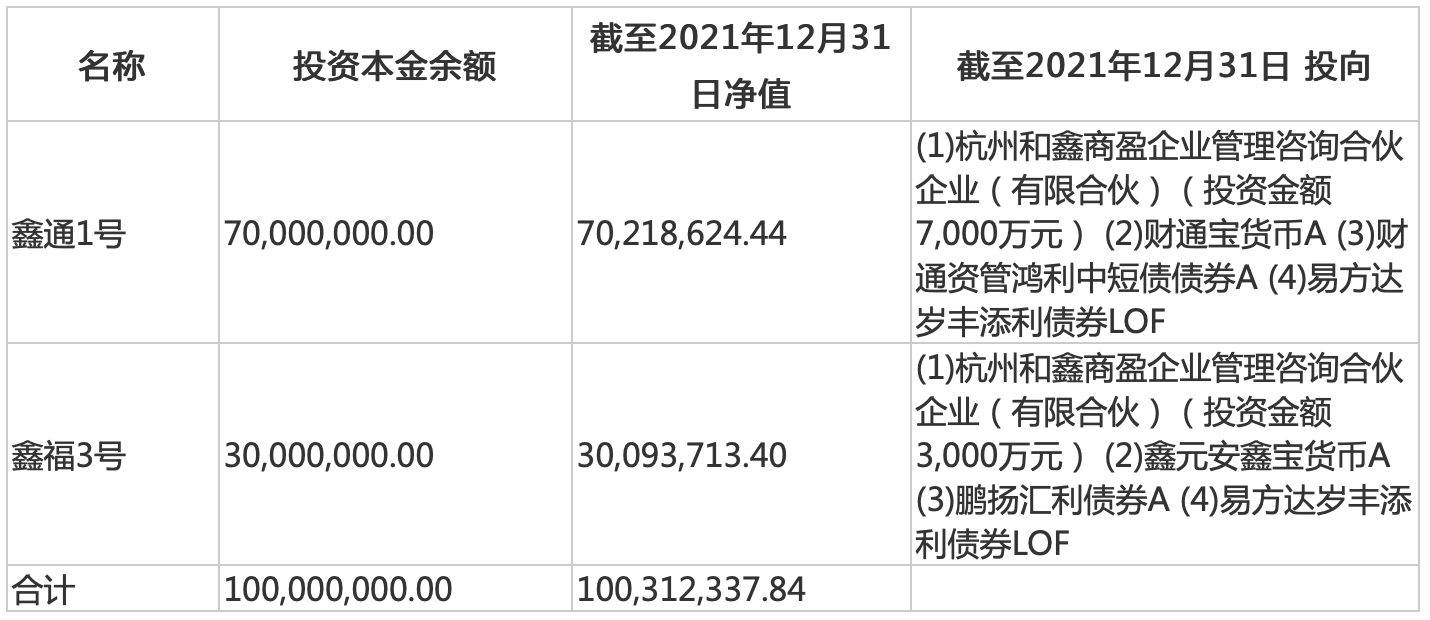 根据《资产管理合同》,鑫通1号资管计划及鑫福3号资管计划属于固定收益类产品,投资于债权类资产的比例不低于80%。然而这一亿元却最终全部投向了杭州和鑫商盈企业管理咨询合伙企业(有限合伙)。