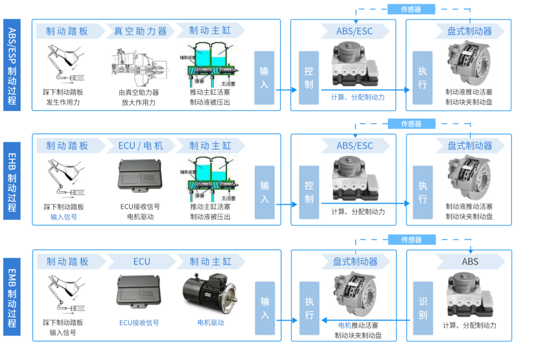 ABS/ESC与EHB、EMB制动过程,资料来源:中金公司