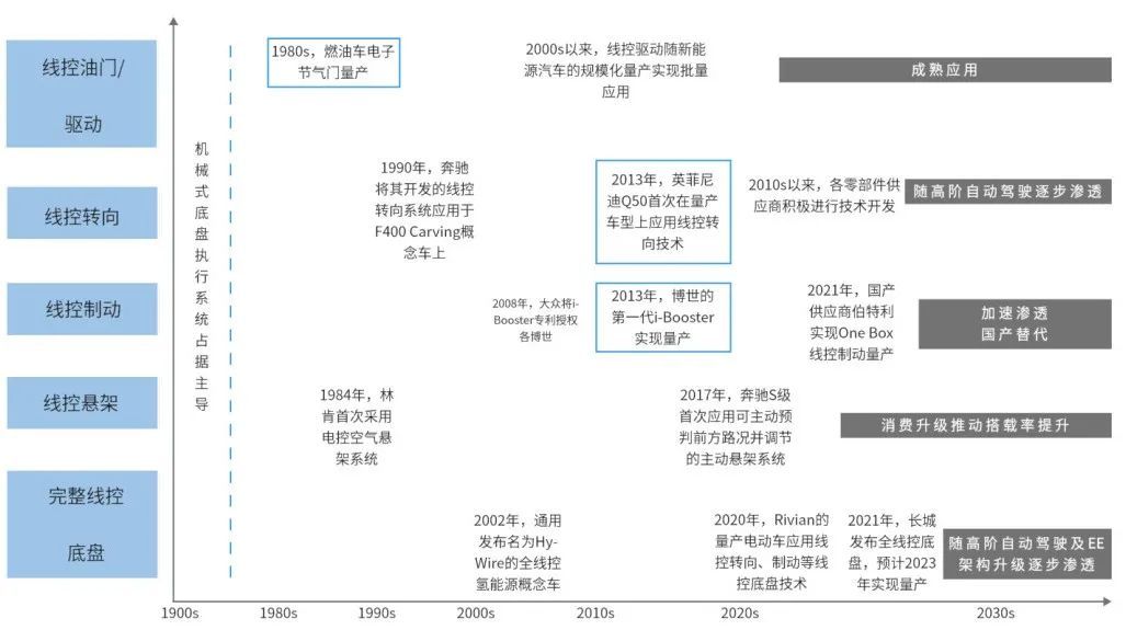 线控底盘技术发展历史,资料来源:中金公司