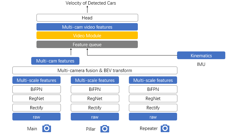BEV网络的优势不仅在于可以使用感知输出到一个3D向量空间,直接进行决策规划,BEV的方法还是一个非常有效的多相机融合框架,通过BEV的方案,原本很难进行正确关联的跨多个相机的近处的大目标的尺寸估计和追踪都变得更加准确、稳定,同时这种方案也使得算法对于某一个或几个相机短时间的遮挡、丢失有了更强的鲁棒性。