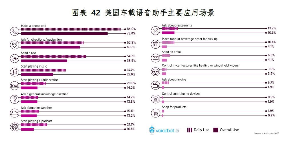 美国车载语音助手主要应用场景,资料来源:Voicebot.ai