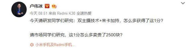 小米集团合伙人、高级副总裁卢伟冰的微博意有所指,当时徕卡的联名伙伴尚是华为,站在对立阵营,卢伟冰对手机联名相机的吐槽非常尖锐:联名表现到成绩单上的提升只有1分,而有了这个联名,手机定价可以大幅提高。