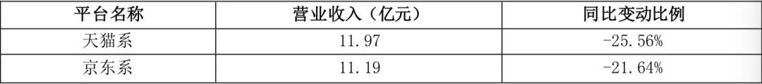在上半年报告期内,三只松鼠第三方电商平台营收30.13亿,占总营收的73.25%。天猫系下降25.56%,京东系下降21.64%。