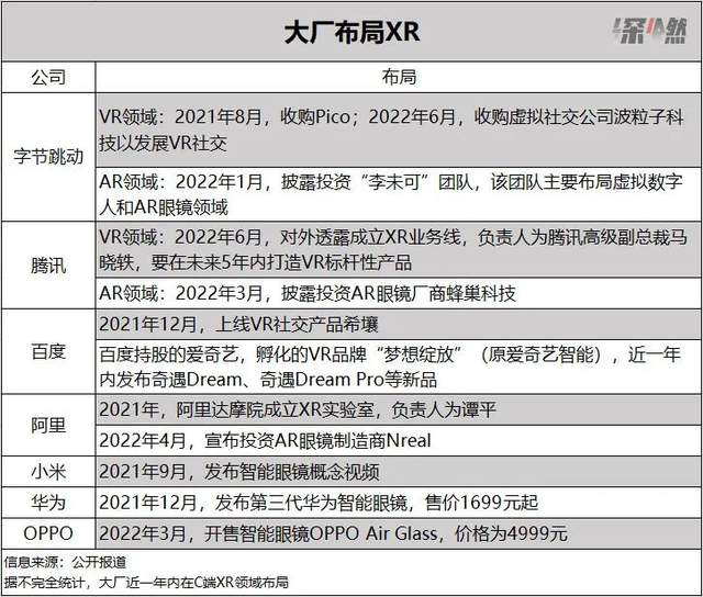 伴随着业务布局,各家大厂的XR团队也浮出水面。