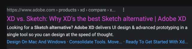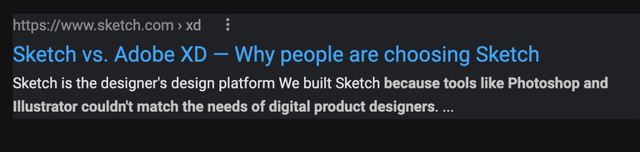 为了应对后起之秀的挑战,2016年Adobe推出了XD。经过几年的发展,如今市场份额只有Sketch的35%。由于一直看不到起色,Adobe在宣传XD的时候明显底气不足,在自己官网上称XD为“Sketch的最佳替代品”。而Sketch则直接在官网回应:我来告诉你为什么设计师都选Sketch不选Adobe XD。