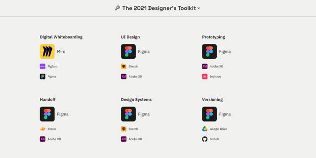 然而,2016年才正式上线的Figma,正在以“狂风暴雨”般的速度席卷设计界。2020年估值20亿美元,2021年估值100亿美元。在设计工具评选网站UX Tools上,Figma包揽了UI设计、原型、Handoff、设计系统,甚至版本控制在内的5个分类的冠军。