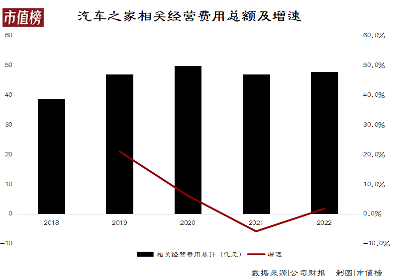 2022年汽车之家相关经营费用总额为47.86亿元,同比增长1.8%,而同为转型期第二年的2019年,经营费用投入同比增长21%。