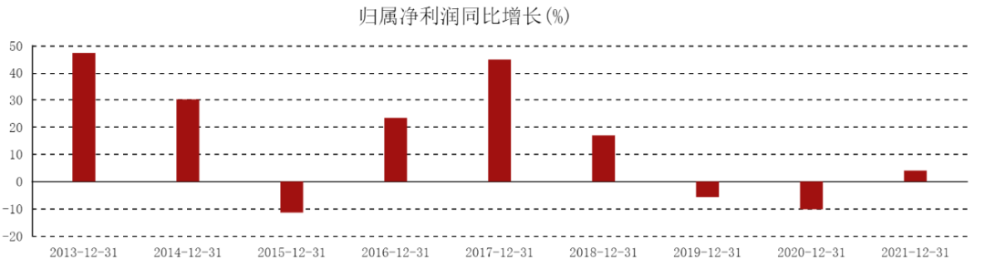 图:格力2013-2021年归属净利润同比增长