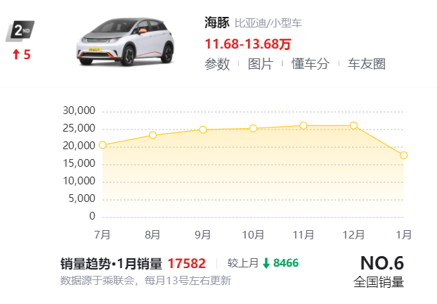 同时,比亚迪还在全面出击。2月10日,比亚迪秦插混的新款车型下降到10万元以下,“高级老头乐”们很可能要面临无路可走。