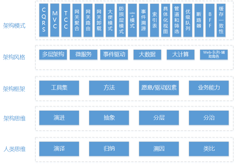架构思维:分治、分层、抽象、演进,溯因更多是在架构设计过程中用到。