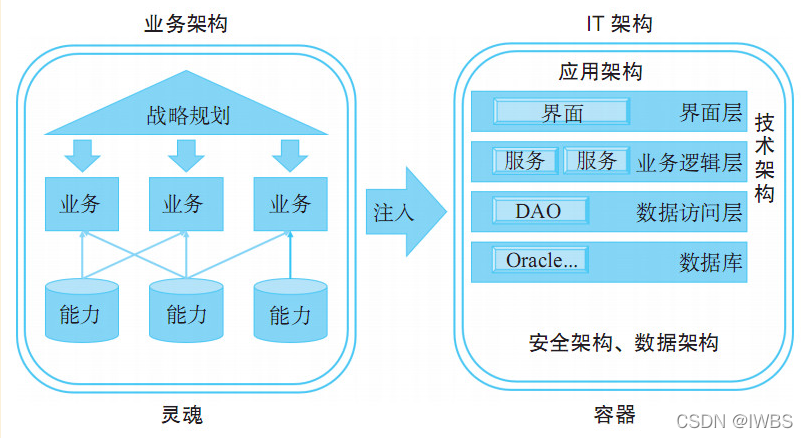 信息系统架构提供业务服务来支撑业务架构,业务架构支撑企业战略,企业战略实现企业目标和愿景。我们在做技术架构设计、应用架构设计、业务架构设计时均要反思我们的设计是完全指向了企业战略,如果方向错了需要及时调整。(这里不考虑战略是错的情况)