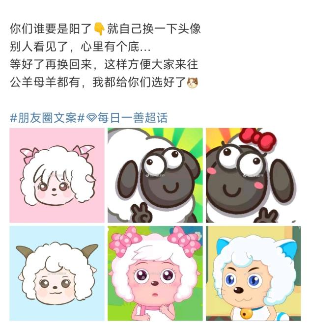 抗原检测结果,也影响到了线下社交。有的网友,收集羊的卡通头像,表示:“谁要是阳了,就自己换一下头像,别人看见了,心里有个底,等好了再换回来,这样方便大家来往,公羊母羊我这里都有。”