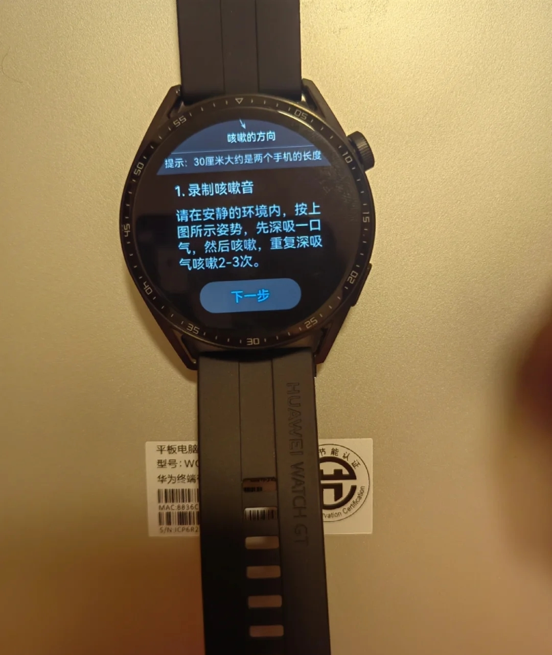 还有网友,利用华为手表中,对于肺部功能的检测,来判断自己是否阳了。进入华为手表,打开华为呼吸研究,进入呼吸健康检测,录制咳嗽声音,似乎就可以看出肺部功能情况。