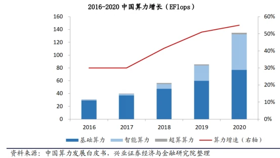 根据工信部发布的数据,2021年,我国算力核心产业规模达1.5万亿元。截至2022年6月底,我国在用数据中心机架总规模超过590万台标准机架,服务器规模近2000万台,算力总规模排名全球第二。