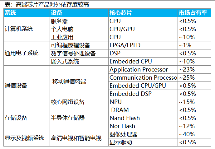 以芯片为例,国产化率普遍较低: