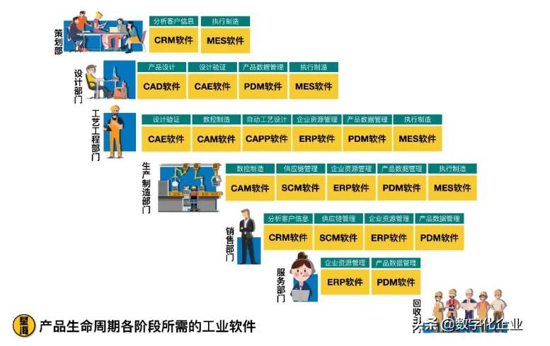 (2)产品生命周期各阶段所需的工业软件: