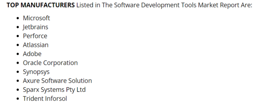 软件开发工具的多数公司也被欧美公司主导。根据The Express Wire在2022年6月公布的Software Development Tools Market Analysis 2022 With Top Leaders(2022年软件开发工具市场分析报告),全球软件开发工具市场在2022年为50.992亿美元,而该报告预计到2028年将会增长到114.9亿美元,复合年均增长率为14.5%。
