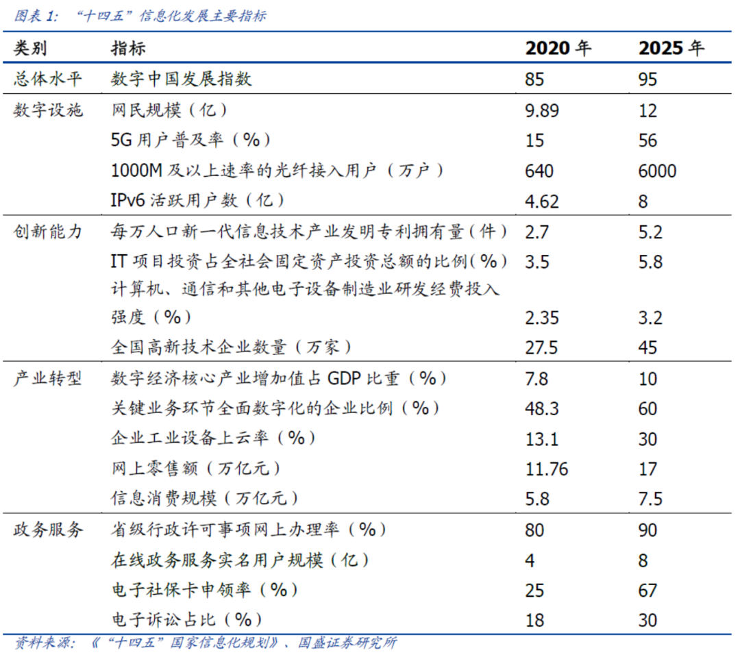 (7)2021年,《“十四五”国家信息化规划》明确2022-2025年将开启新一轮数字经济建设周期。