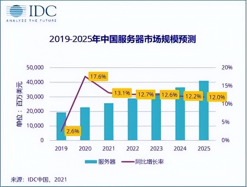 根据中信证券研报,2021年全球服务器出货量为1354万台,国内服务器出货量375万台。