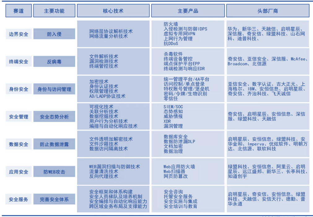 包括硬件安全、软件安全、安全服务等各类产品;