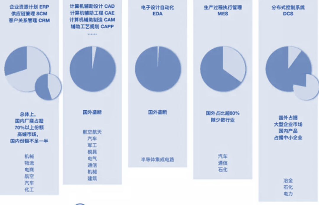 (4)中国现状:工业软件中外企业市场格局及应用