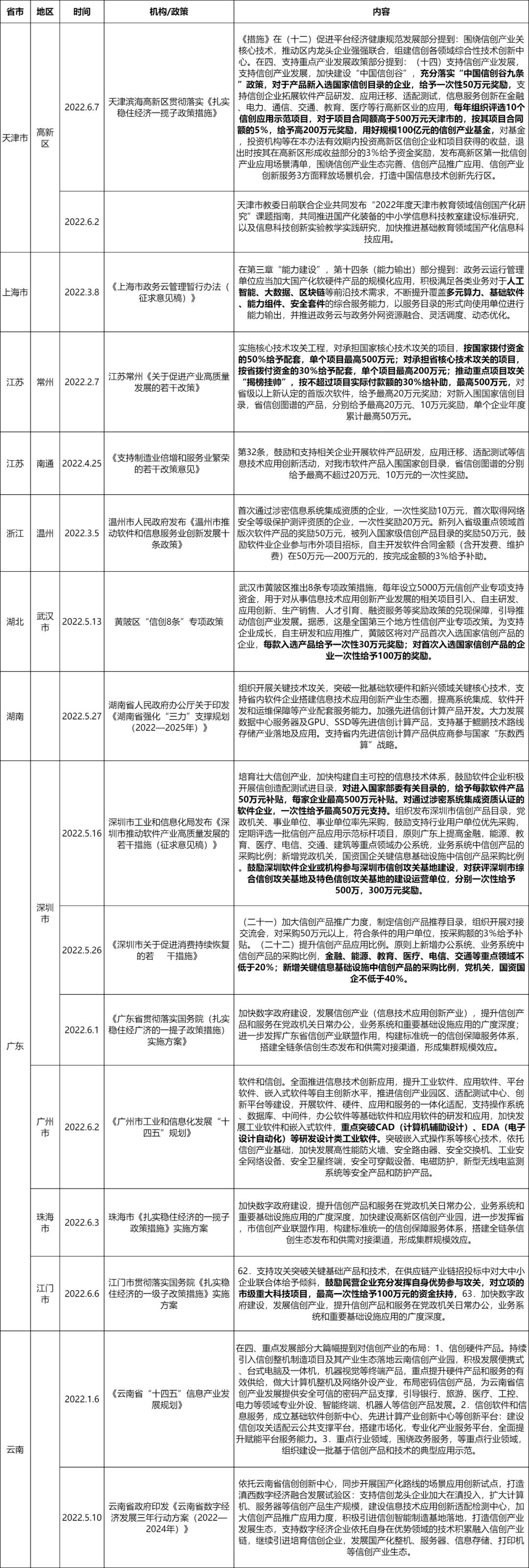 (三)各省市政策:地区信创政策带有地域特色,补贴+奖励为主,单项目&单产品按照合同额一定比例,10万-500万金额不等