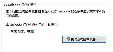 最下面非Unicode程序的语言,更改系统区域设置