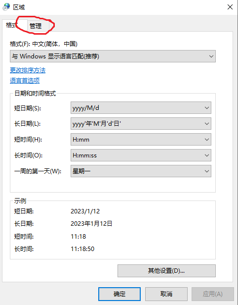 当前系统区域设置设置为中文即可,如下图