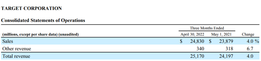 图/截至2022年4月30日,塔吉特2022年第一季度财报,利润表