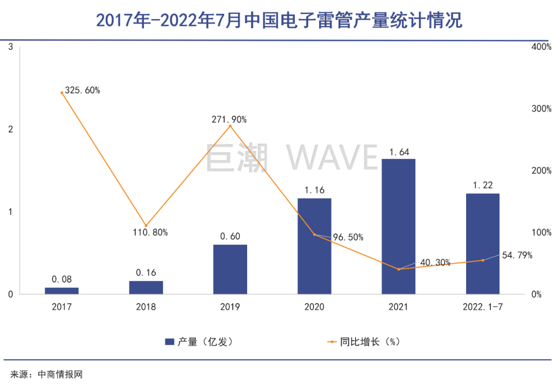 电子雷管在工业雷管中的比重,呈现出巨大的增幅。