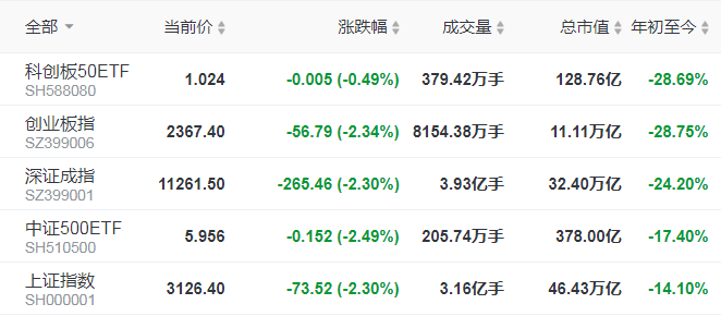 数字看起来并不高。不过对比今年以来科创50、创业板指近30%跌幅,深证成指超20%跌幅,中证500、上证指数分别跌15%左右。
