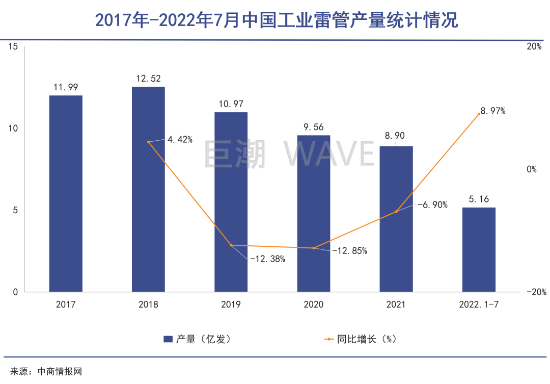 长期以来,中国的雷管市场中,电子雷管外的工业雷管占据了绝对的主导地位。