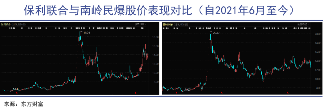 在这样的消息刺激下,民爆企业进入上行通道,2022年2月,拥有国内最大数码电子雷管产能的保利联合走出7连板的牛市,累计涨幅达104.9%,一时间成为“明星股”。