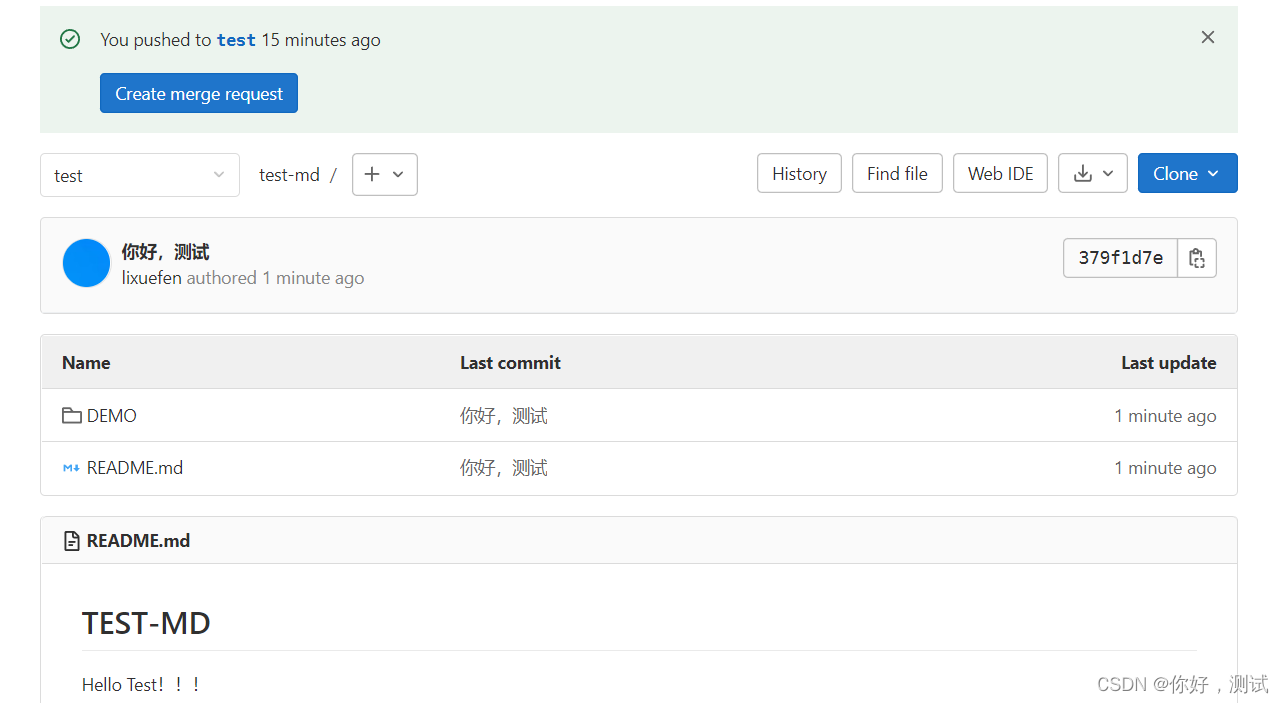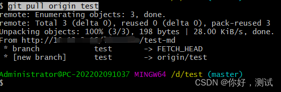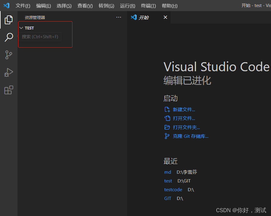 这样,我们git服务器test分支的代码就被我们pull到本地了。我们可以通过VScode软件进行编辑。