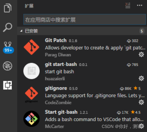 VScode工具上需要安装git的一系列插件。按照下图名称进到应用商店进行搜索安装即可。