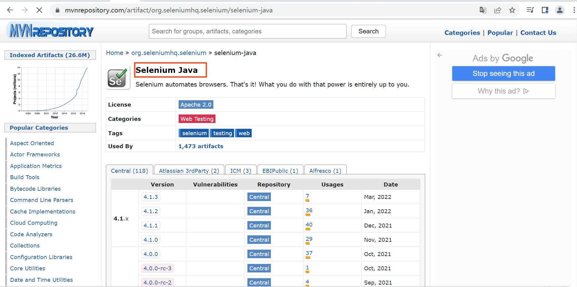地址:https://mvnrepository.com/artifact/org.seleniumhq.selenium/selenium-java