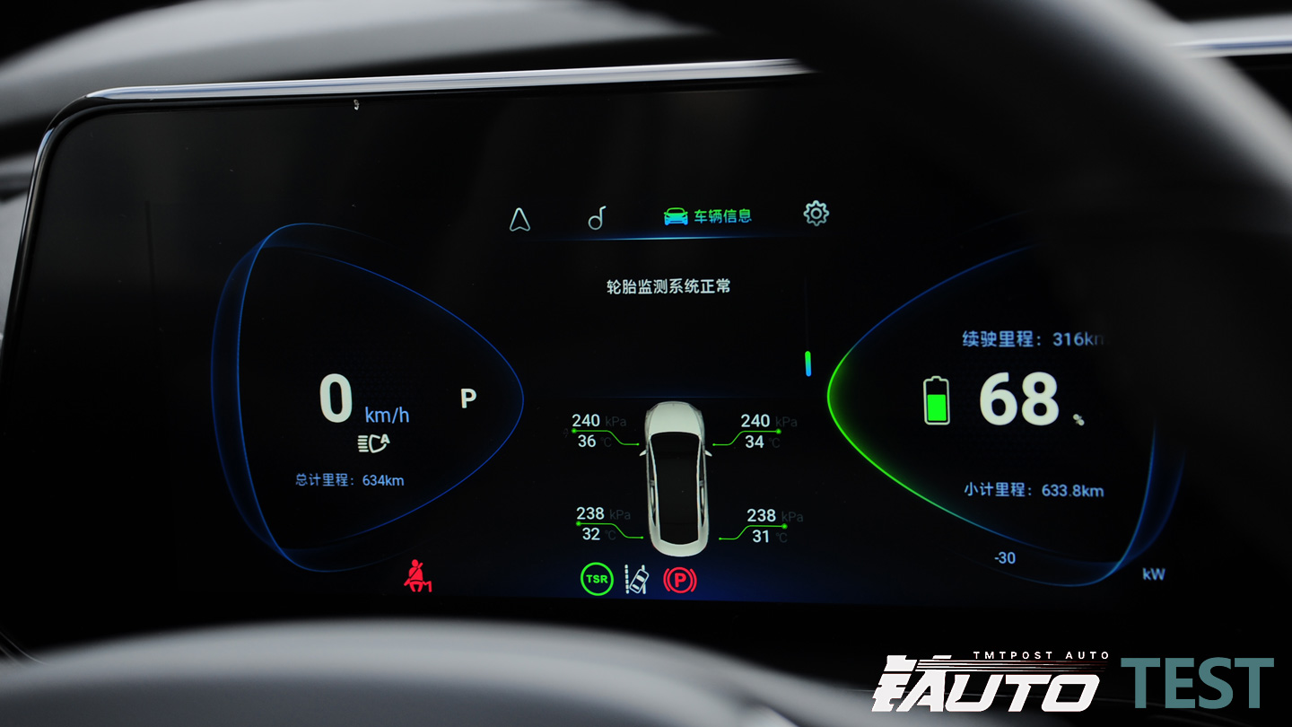在驾驶过程中,续航里程显示比较精准。此版本车型采用60kWh电池,在城市道路(车外温度30°)开启空调,电量从90%开到还剩20%,大概可以行使300公里左右。对于日常出行而言比较够用,和官方给出的续航里程为500km(NEDC)相差不大。双电机版本续航少50km。