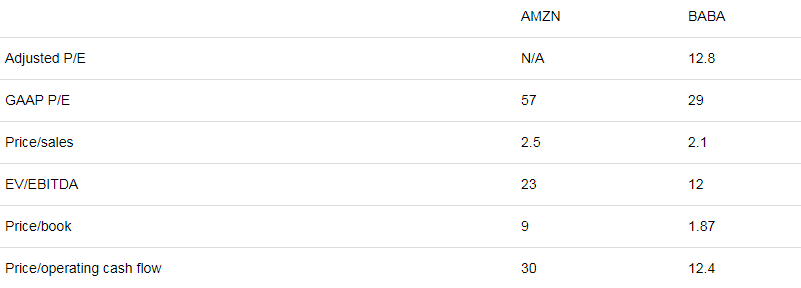 阿里巴巴多指标优势,亚马逊上涨空间有限