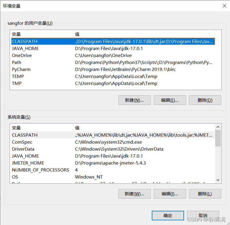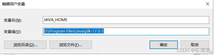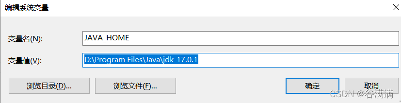 (4)用户变量和系统变量下,新建,变量名:JAVA_HOME,变量值:D:\Program Files\Java\jdk-17.0.1