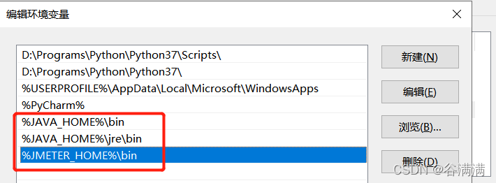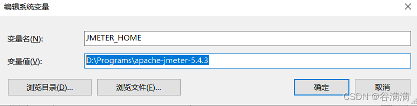 (1)系统变量下,新建变量:JMETER_HOME,变量值:D:\Programs\apache-jmeter-5.4.3