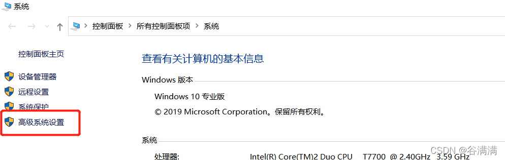 (2)点击高级系统设置,弹出如下窗口。选择高级