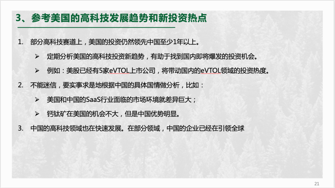 同时,我们不少投资人或投资机构都是从互联网或移动互联网起家,不少人或许已经习惯了砸钱抢资源、抢用户、抢人才,然后快速催熟某个行业的打法,但这种战略在高科技领域里不再适用。高科技领域自有其发展规律,资金并不能显著缩短企业发展所需要的时间。只有尊重高科技领域的规律,才能做好投资。