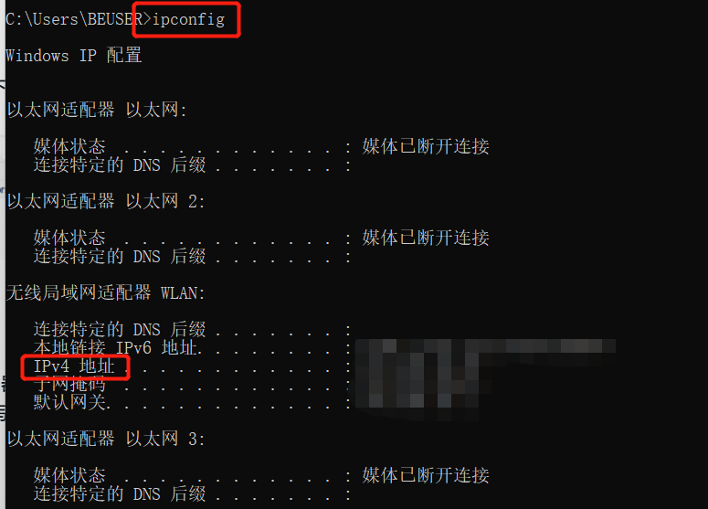 ①win+R,在输入框输入cmd,在弹窗中输入ipconfig,此时IPv4后面的地址就是你的主机ip,将它输入到服务器主机名输入框即可
