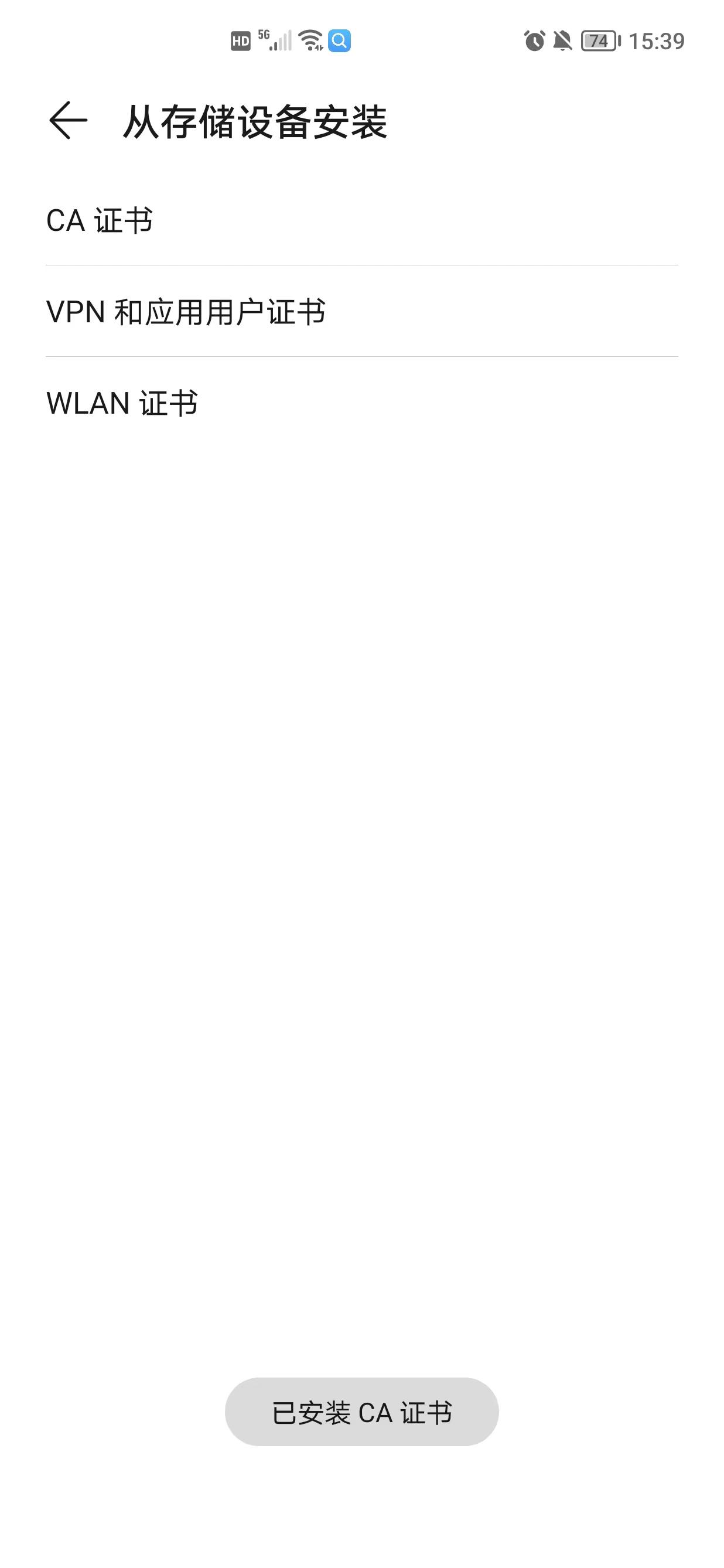 打开设置,搜索栏搜索证书,点击从存储设备安装;或者点击安全-更多安全设置-加密和凭据-从存储设备安装证书-CA证书-点击仍然安装-搜索栏搜索fiddler即可-点击证书-点击安装-提示安装成功