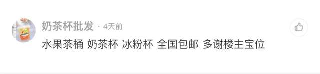 最近,李离注意到,连自己宝贝的留言区都有“二手商贩”的身影。因为浏览二手奶茶设备的人,是他们的精准目标客户,因此他们会在一些宝贝的留言区,宣传自己的设备,同时还不忘感谢一下楼主。