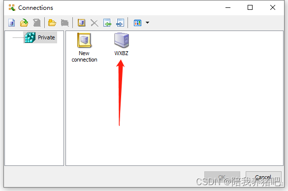 - 点击start-->connect,双击New connection,然后输入Connection name、Host、Base以及用户名和密码,如下图所示