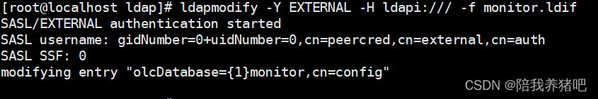 ldapmodify -Y EXTERNAL -H ldapi:/// -f monitor.ldif